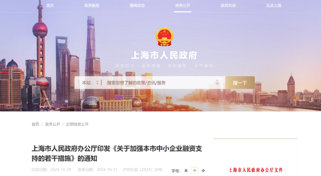 10月31日,上海市人民政府办公厅发布《关于加强本市中小企业融资支持的若干措施》(以下简称“若干措施”)。《若干措施》聚焦解决市中小企业融资的堵点和卡点,通过有效落实存量政策、加力推出增量政策,进一步提高政策措施的针对性、有效性,加强中小企业融资支持。其中,《若干措施》提出,推动政策性融资担保基金增量扩面。2024年市中小微企业政策性融资担保基金业务规模扩大到1200亿元。充分利用区块链技术,推进大宗商品供应链金融担保业务新模式,为大宗商品供应链企业增信赋能。