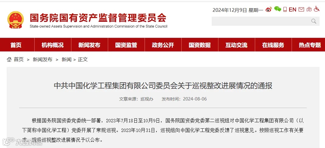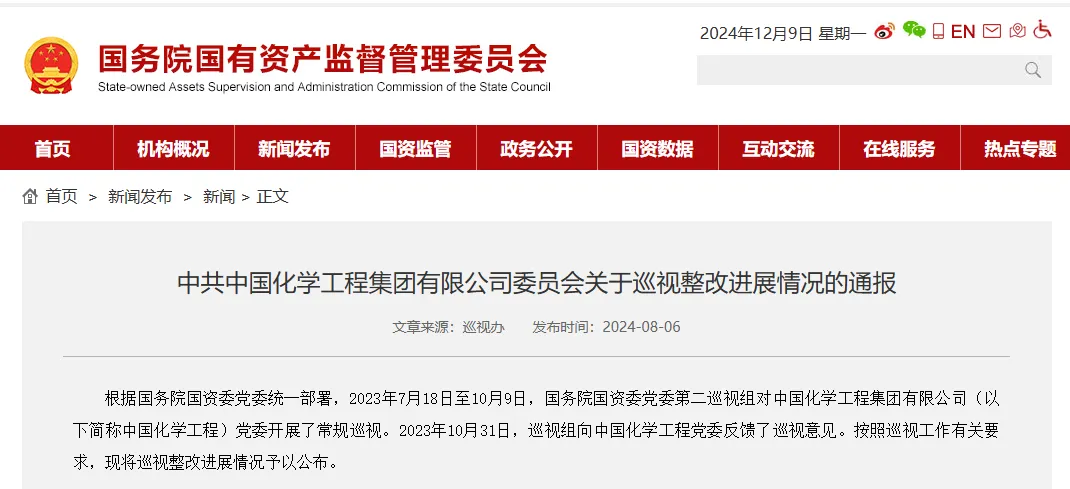 据国资委官网信息显示,中国化学工程集团有限公司(以下简称“中国化学工程”)在《巡视整改进展情况的通报》中表示:加大考核和依法清收力度,加强预算管控,合理控制保理、应收账款证券化规模。