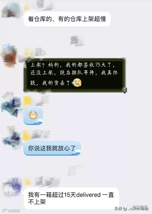 不过从最近排队等上架的情况来看,许多卖家貌似非常自觉了。一位卖家说他的货物都签收15天了,还在等待上架中,另一位卖家立马比惨他有一箱超过15天delivered也没上架呢?这样说来,那些有同样遭遇的卖家可以把心放在肚子里了,你的货物没丢。
