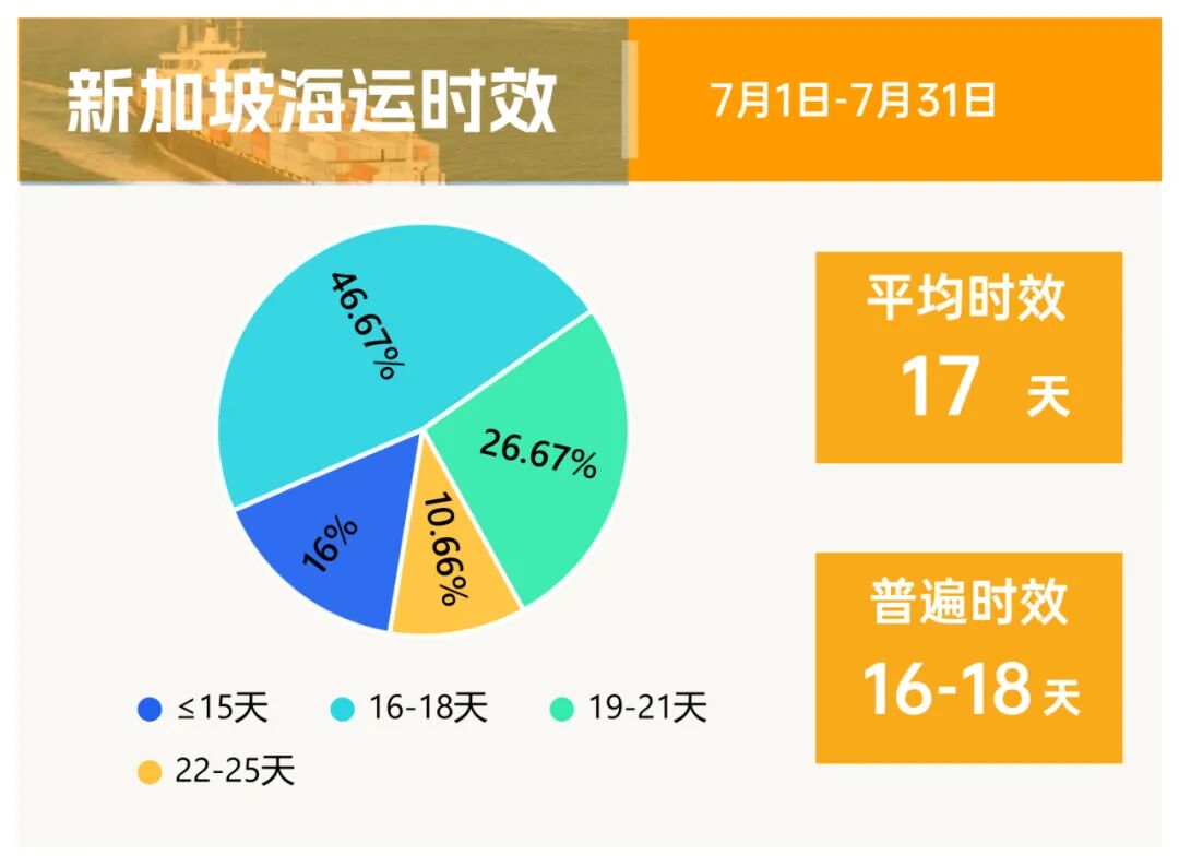 从7月的时效来看,泰国海运时效普遍在15-20天,平均时效18天。