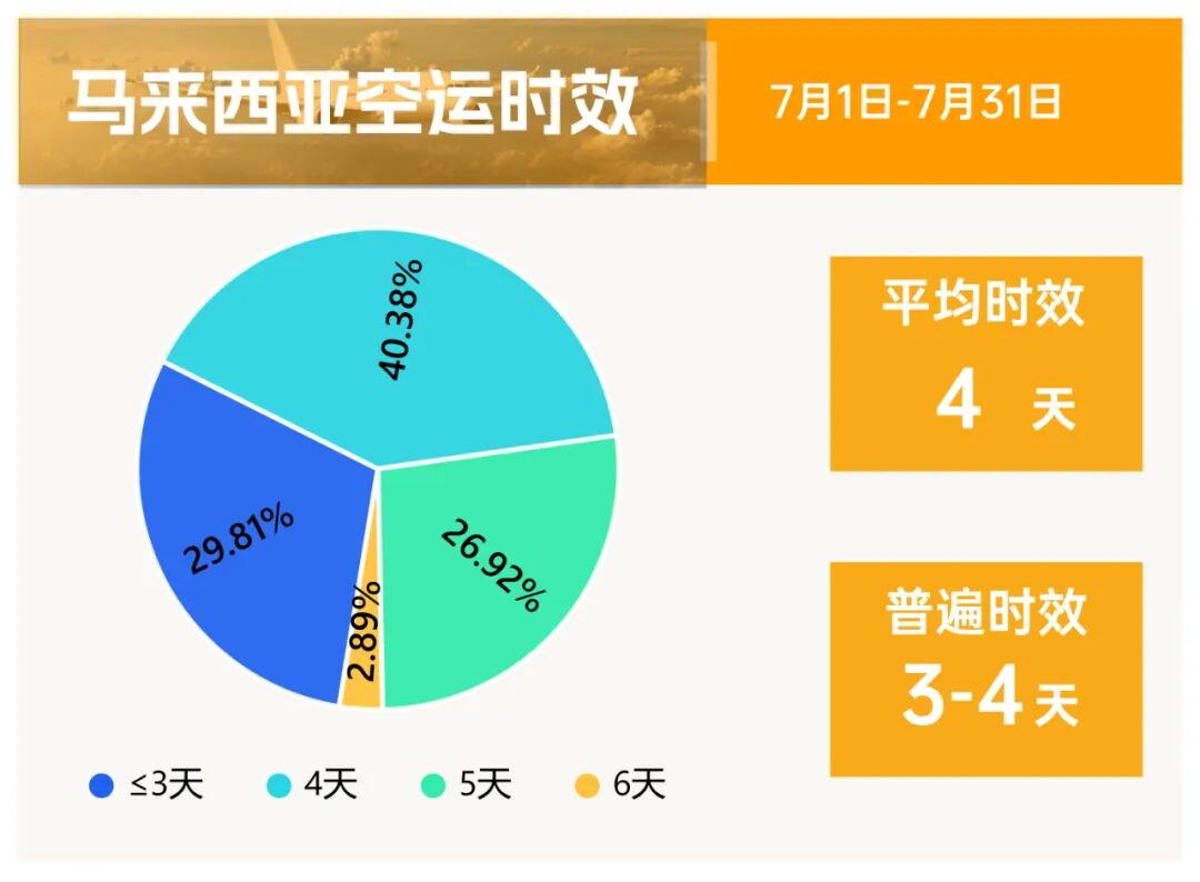 7月份马来西亚空运整体时效在3-4天,平均时效4天左右