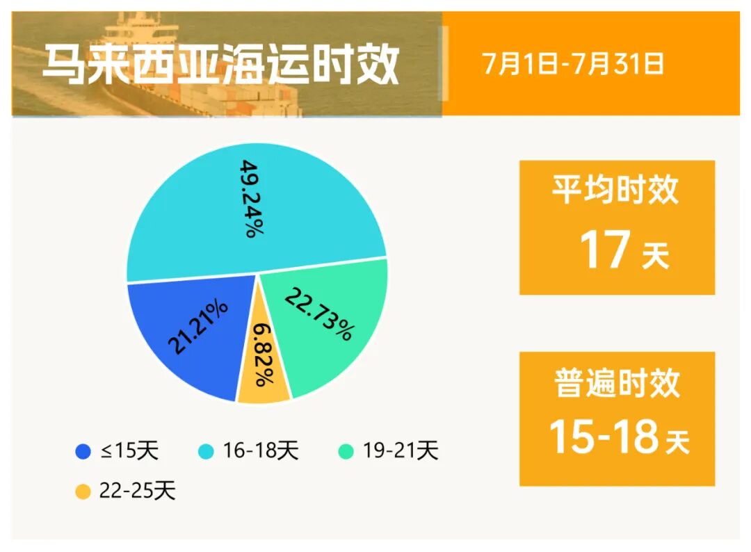 马来西亚海运时效17天左右,普遍时效在15-18天。