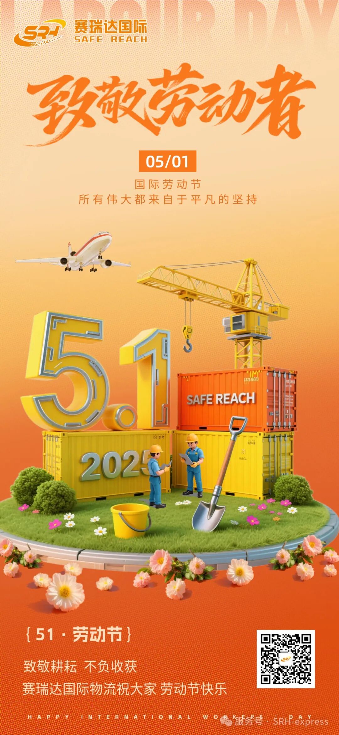在这繁花似锦的五月,五一国际劳动节如约而至。赛瑞达国际物流的每一次跨越山海、准时送达,都离不开客户的信任与托付,是您将承载着期望的货物交予我们,给予我们成长的机会。