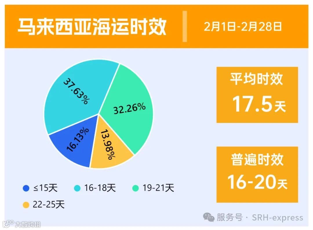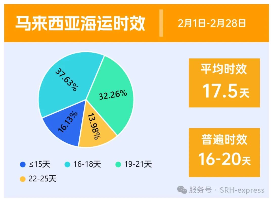 马来西亚部分海运时效达二十多天,普遍时效在16-20天,平均时效17天左右。