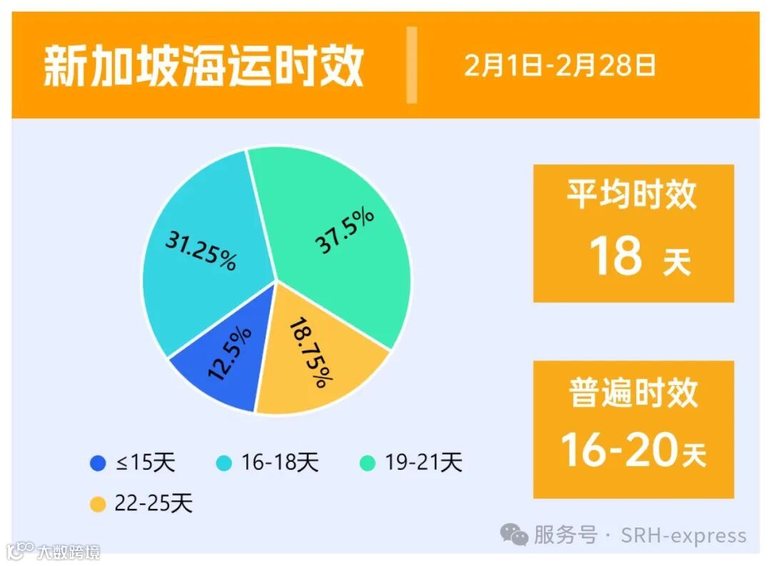2月份新加坡海运整体时效在16-20天,平均时效18天。