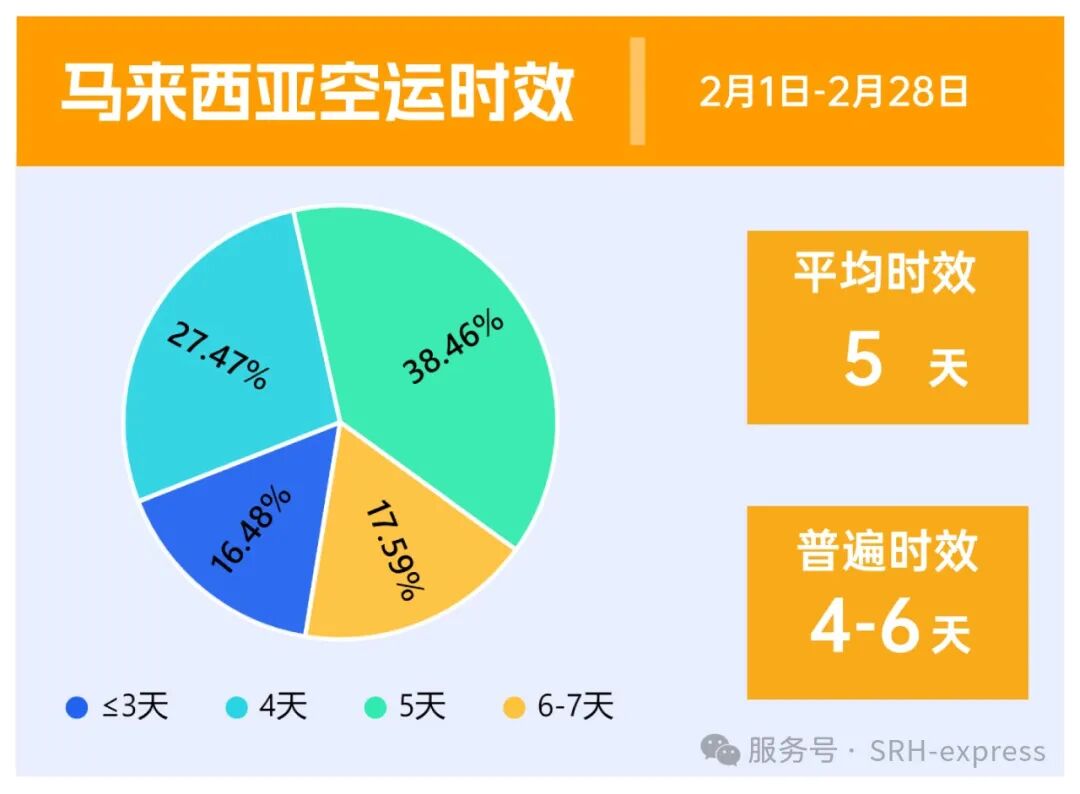 2月份马来西亚空运整体时效在4-6天,平均时效5天左右