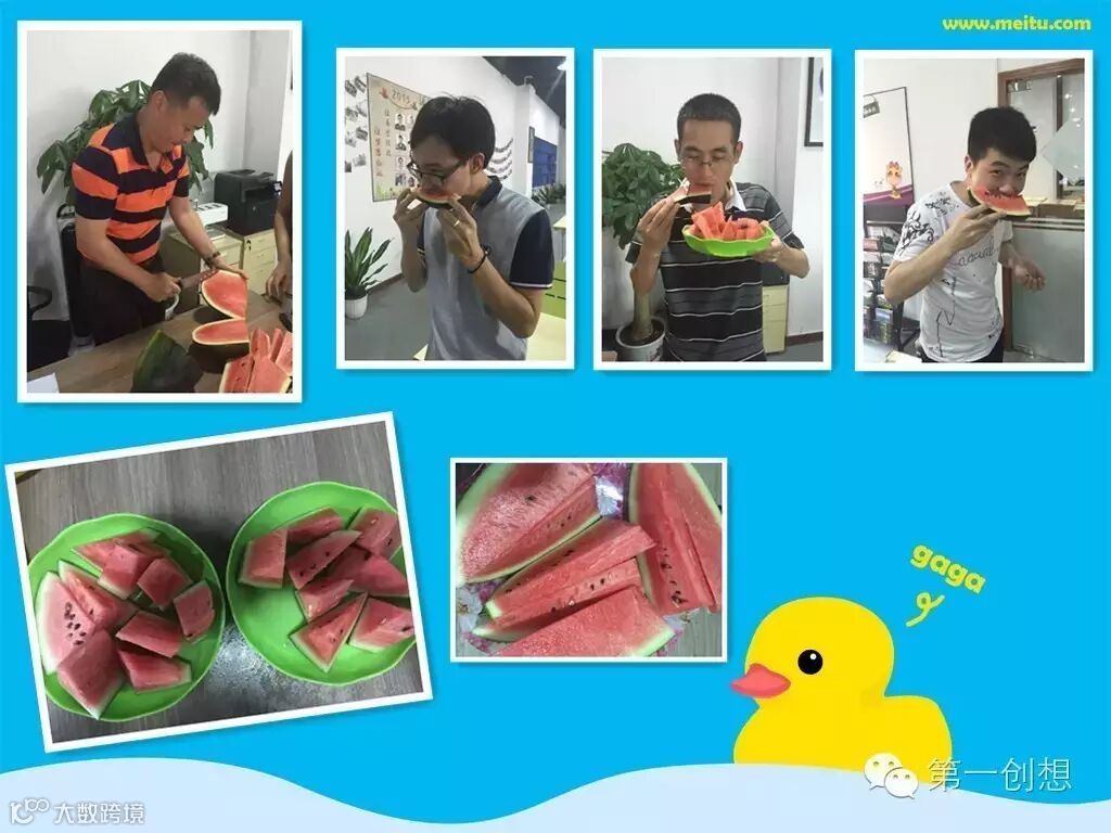 为了感谢各位小伙伴的努力付出,第一创想给各位小伙伴送上香甜的西瓜,为在酷暑中努力奋战的小伙伴们带来了一丝清凉。虽然领导的刀工有待改进,但小伙伴们吃在嘴里,甜在心里。