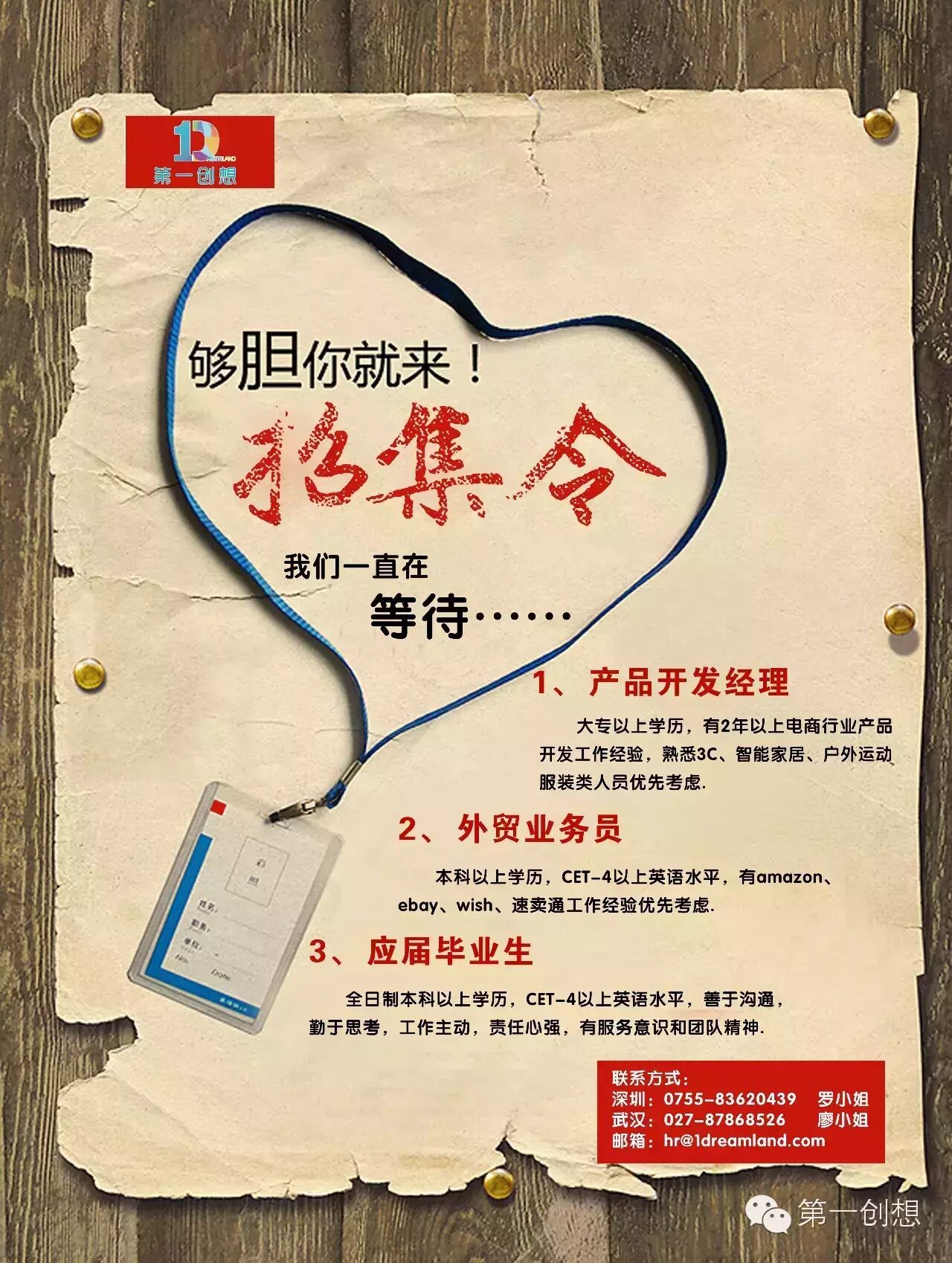 伯乐识良马,明主觅贤才!第一创想期待您的加入!