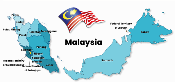 马来西亚是一个位于东南亚的国家,国土被南中国海分隔成东、西两部分由13个和3个联邦直辖区组成。
