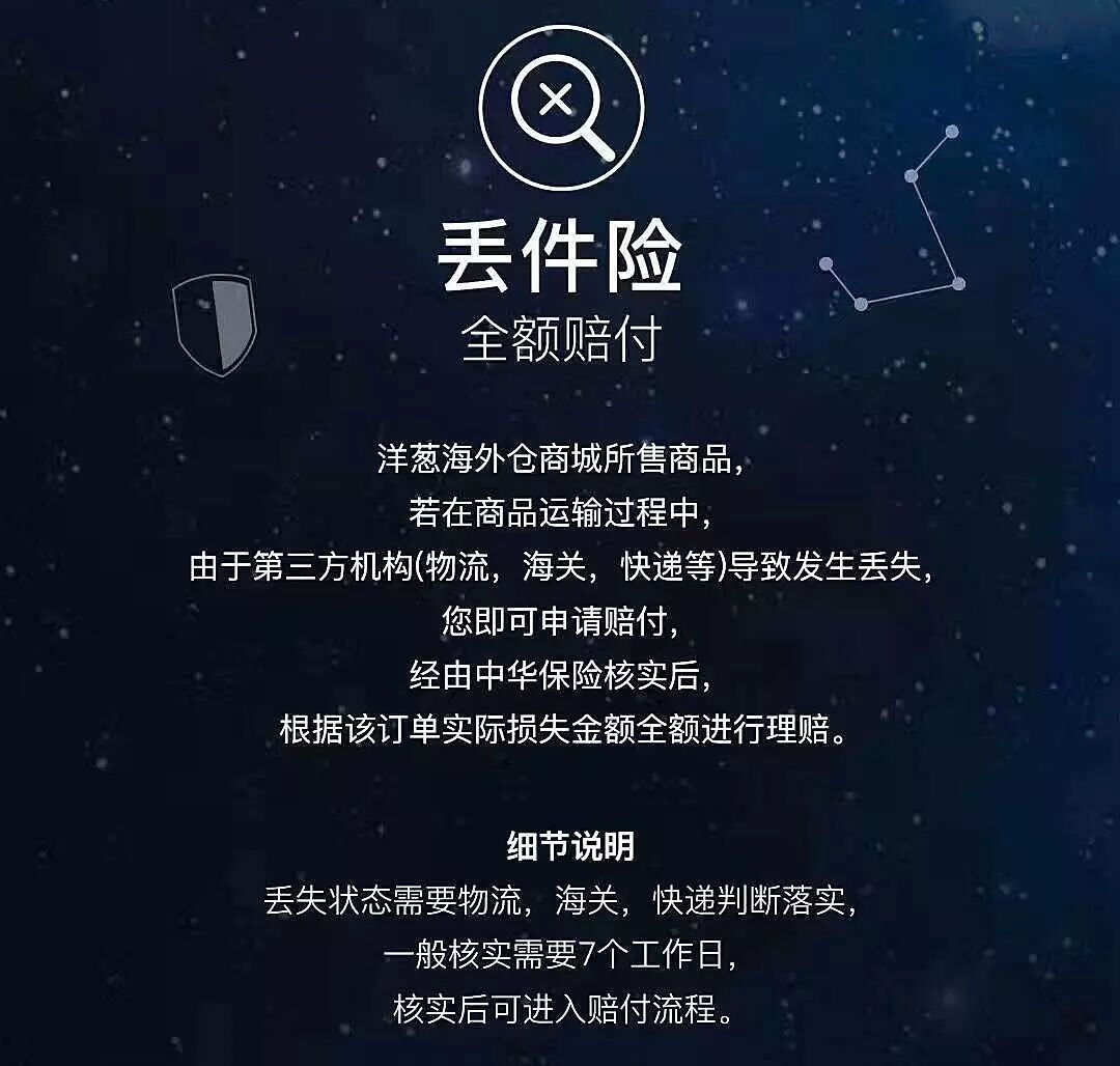 针对跨境电商领域几大难题推出正品险、本土版本险、有效期险、货损险、丢件险和延误险6大险种,购买商品免费送险,为你买买买再加一道保障!