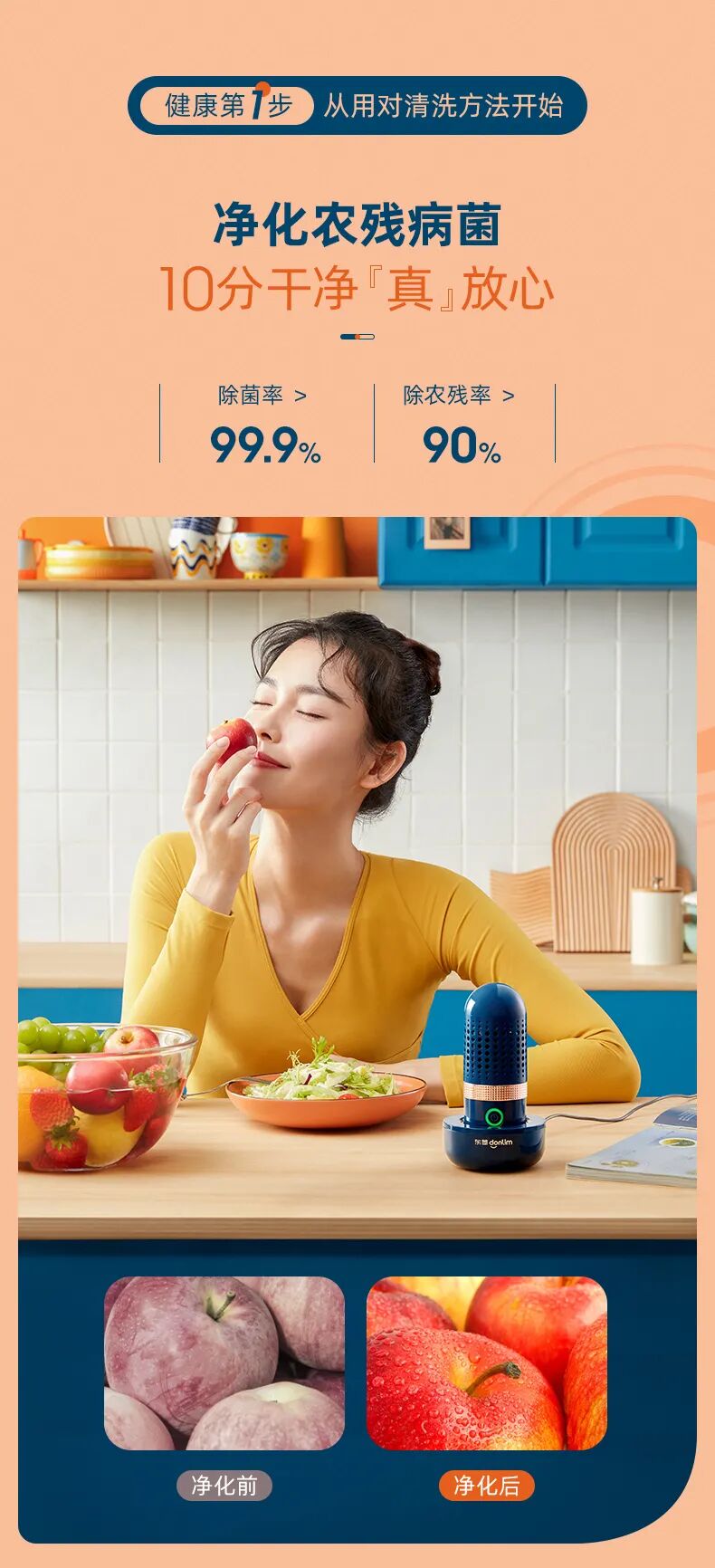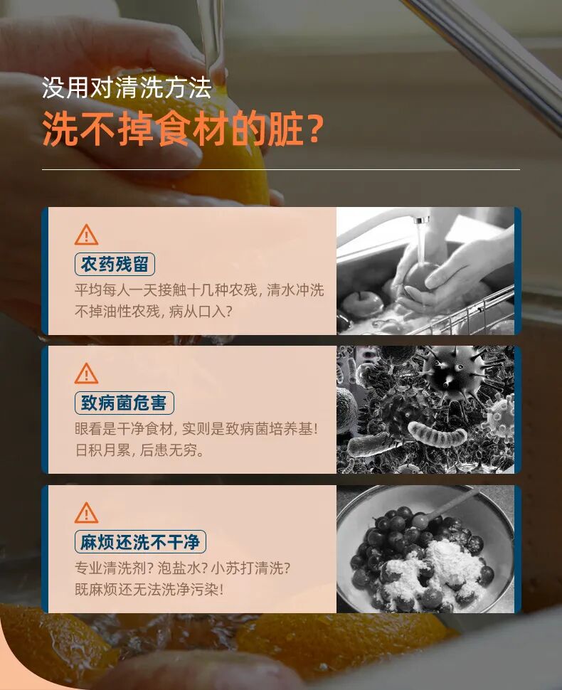 3、10分钟干净,99%除菌率,90%去除农残率。