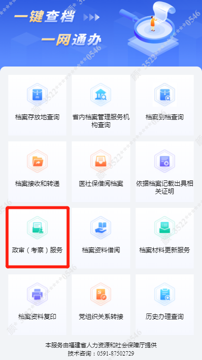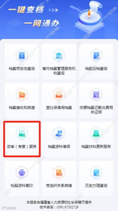 点击“政审(考察)服务”(匹配到存档人员存档信息方可办理)