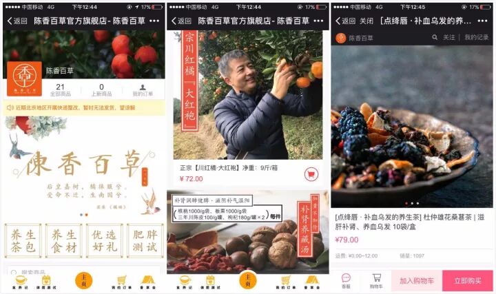 2016年10月,陈香百草从0开始,全力运营有赞微商城,向28到55岁、热爱养生的顾客推荐川陈皮系列养生茶包以及各种天然养生食材。