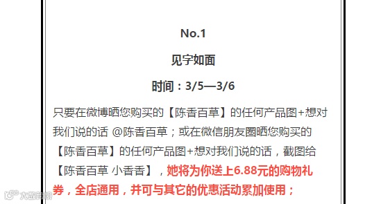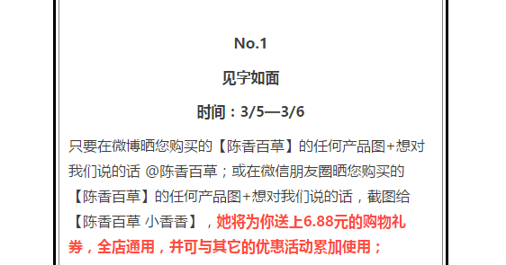 当然,陈香百草还常用有赞的营销工具如优惠券和限时折扣等功能,在节日活动期间和粉丝互动。不过,他们的营销工具用得很“小气”,不是广撒网,而是用好玩有趣的门槛让粉丝积极参与。例如优惠券的发放,只有当粉丝在社交网络晒出自己购买的产品与想说的话,才能获得。