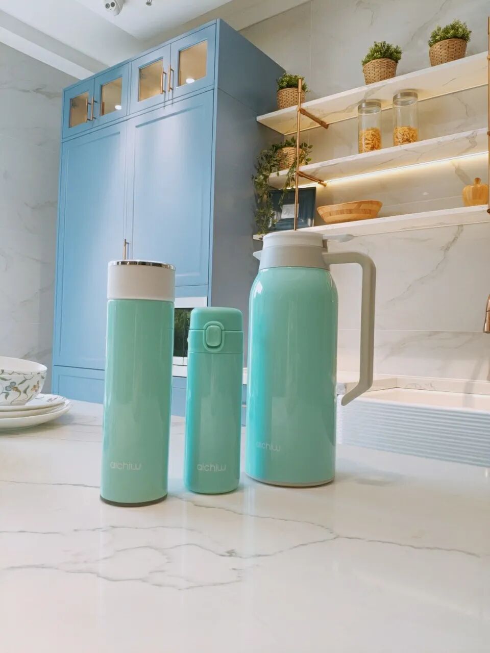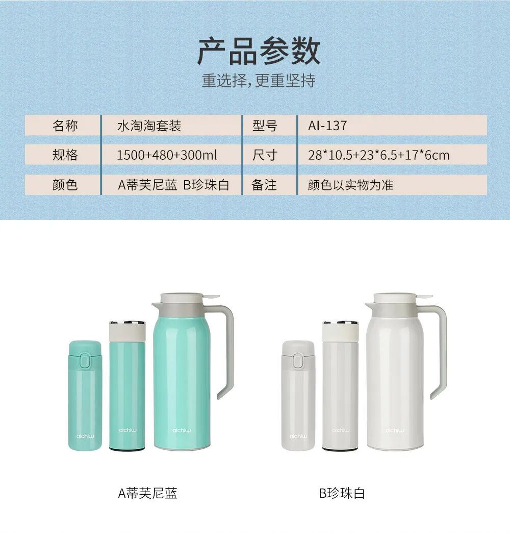4.组合方便,杯子可以携带出行,保温壶即可以当热水瓶用,亦可以当泡茶壶。