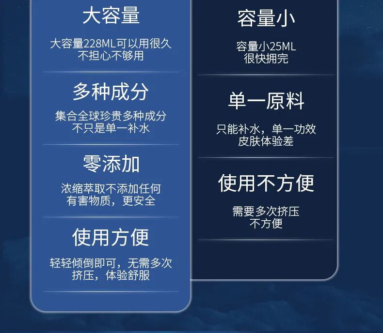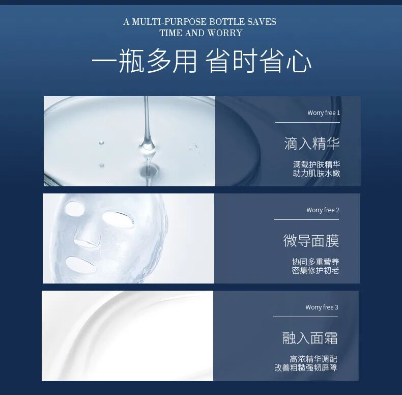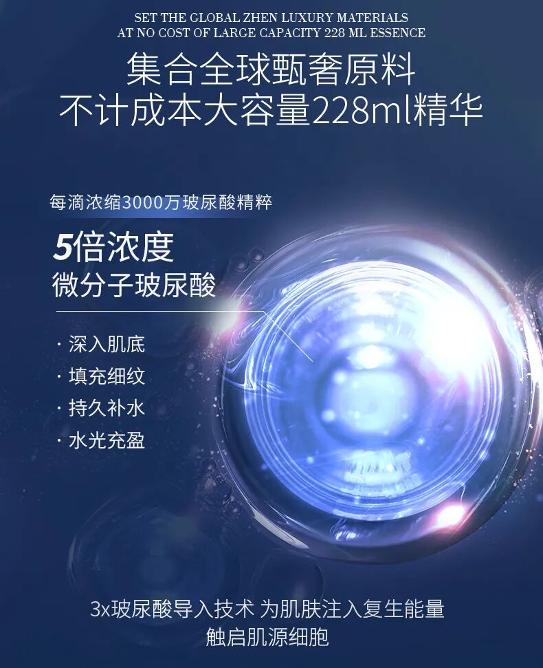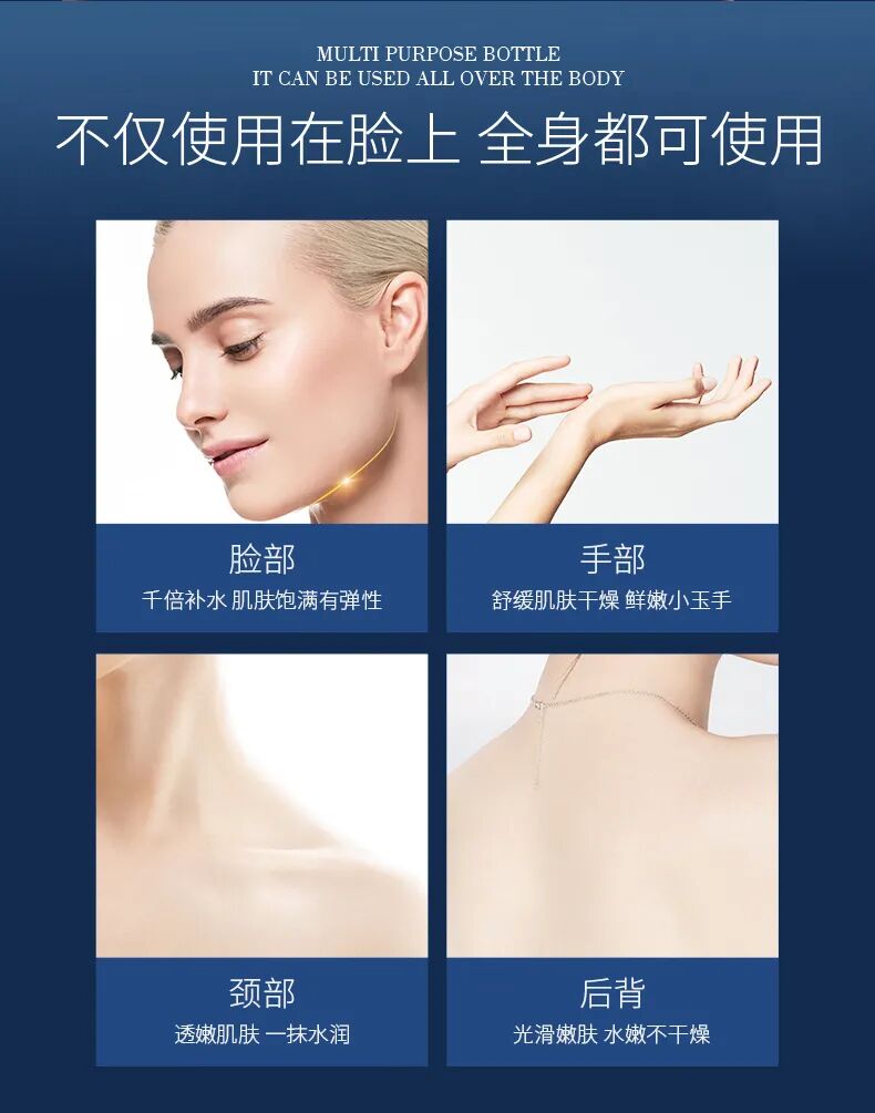 2.集合全球甄奢原料,每滴浓缩千万玻尿酸精华,正常肌肤美白,敏感肌肤修复,一瓶万用。