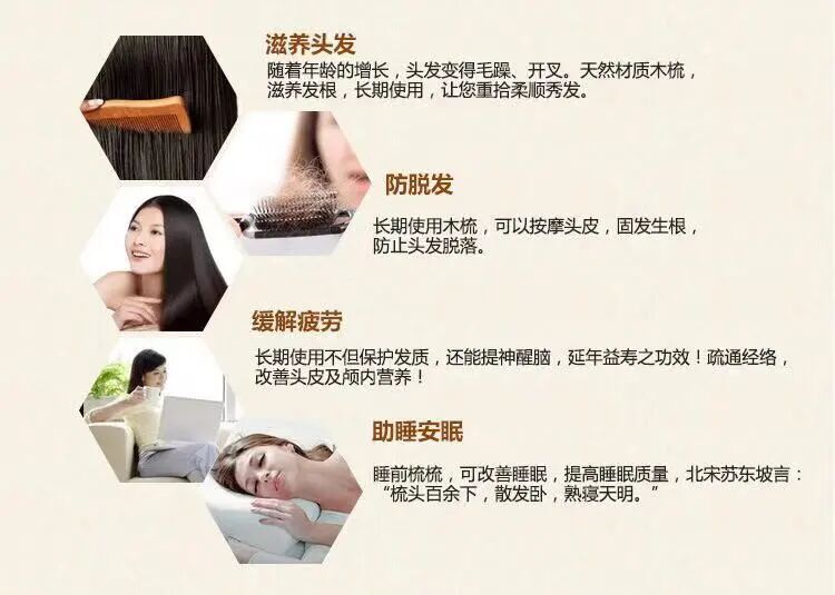 2、具有疏通经络,提神提脑,按摩头皮,固发生根,防止脱发,柔顺秀发。