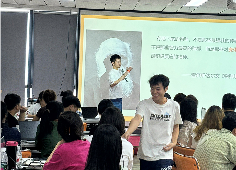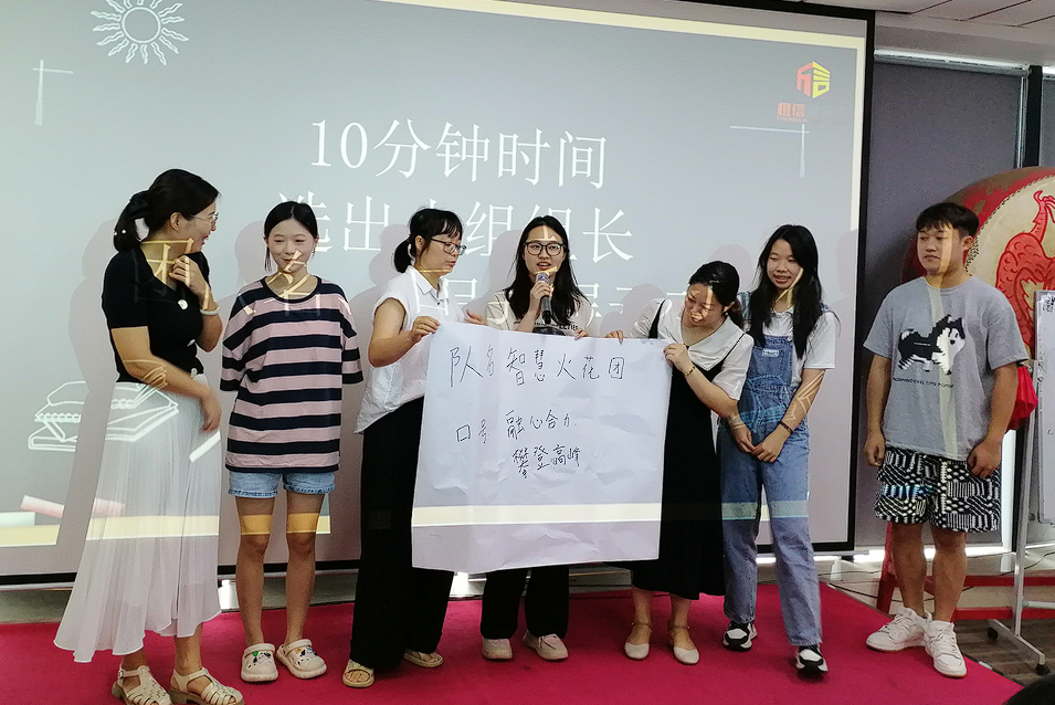 首先,经过欢乐有趣的破冰游戏后,由我们此次培训的班主任李想老师讲解课程安排和基本注意事项,并主持给大家分成7组,确定队名、口号、队长、队员。各小组纷纷上台发言,活力满满,互相配合,展现团队风采。