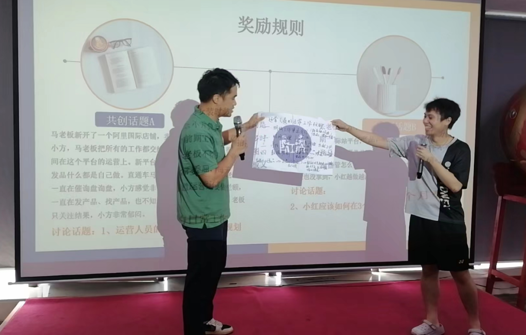 之后,本次培训逐渐进入尾声。首先是毕业考试,同学们认真答题,用优异的成绩展现这次培训的学习成果,老师们进行试题讲解,帮助大家查漏补缺,方便后续专项突破。之后是世界咖啡集体共创环节,本场培训的班主任李想老师抛出关于国际站店铺运营的讨论话题。各小组讨论怎么制定运营计划,逐步落地,把公司平台数据给提升上去。李想老师妙语点评,指导学员提升,现场气氛热烈,欢声笑语不断。