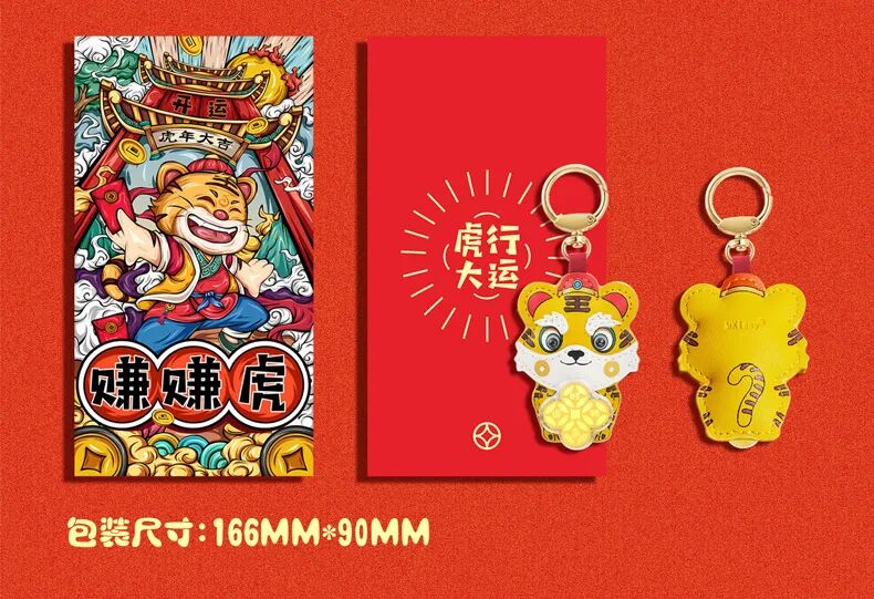 红红火火的内衬上,黄色的小老虎好吸睛