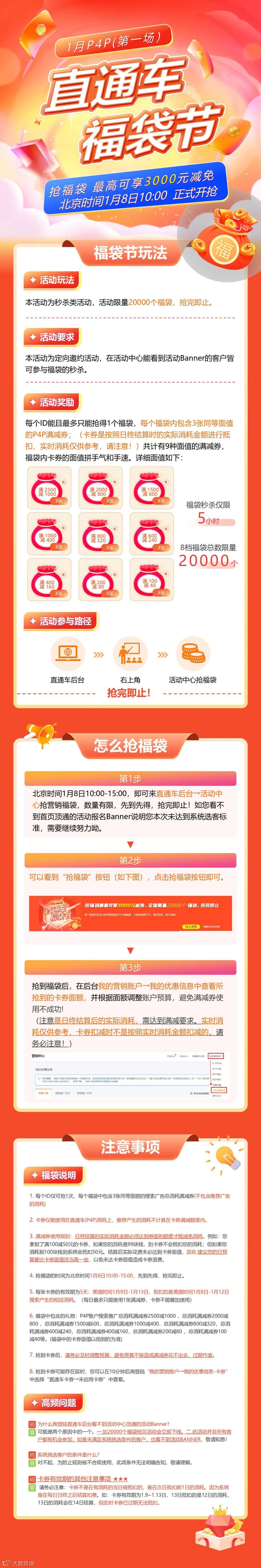 规则:本场20000个福袋,最高3000元福利(3张同等面额卡券)