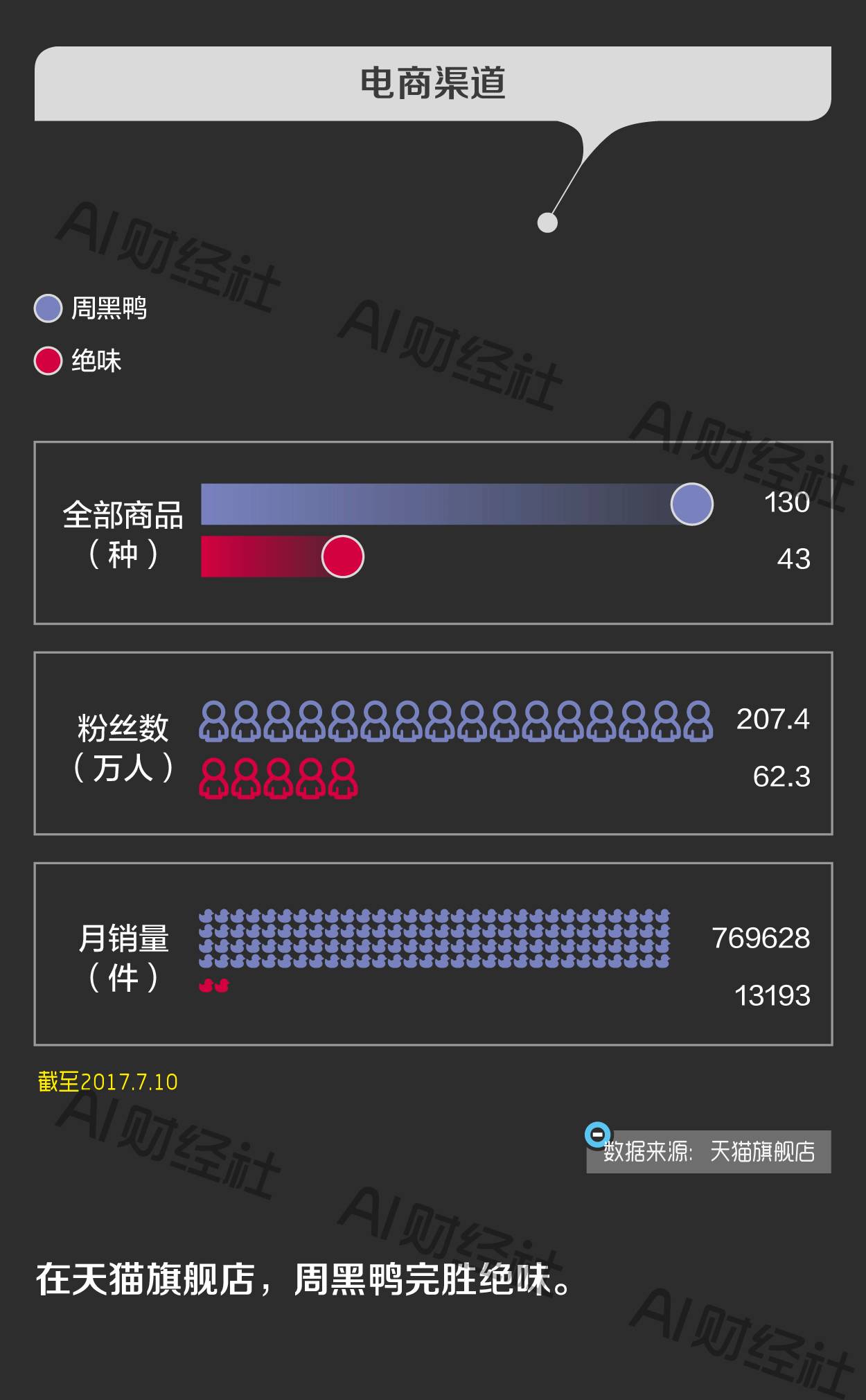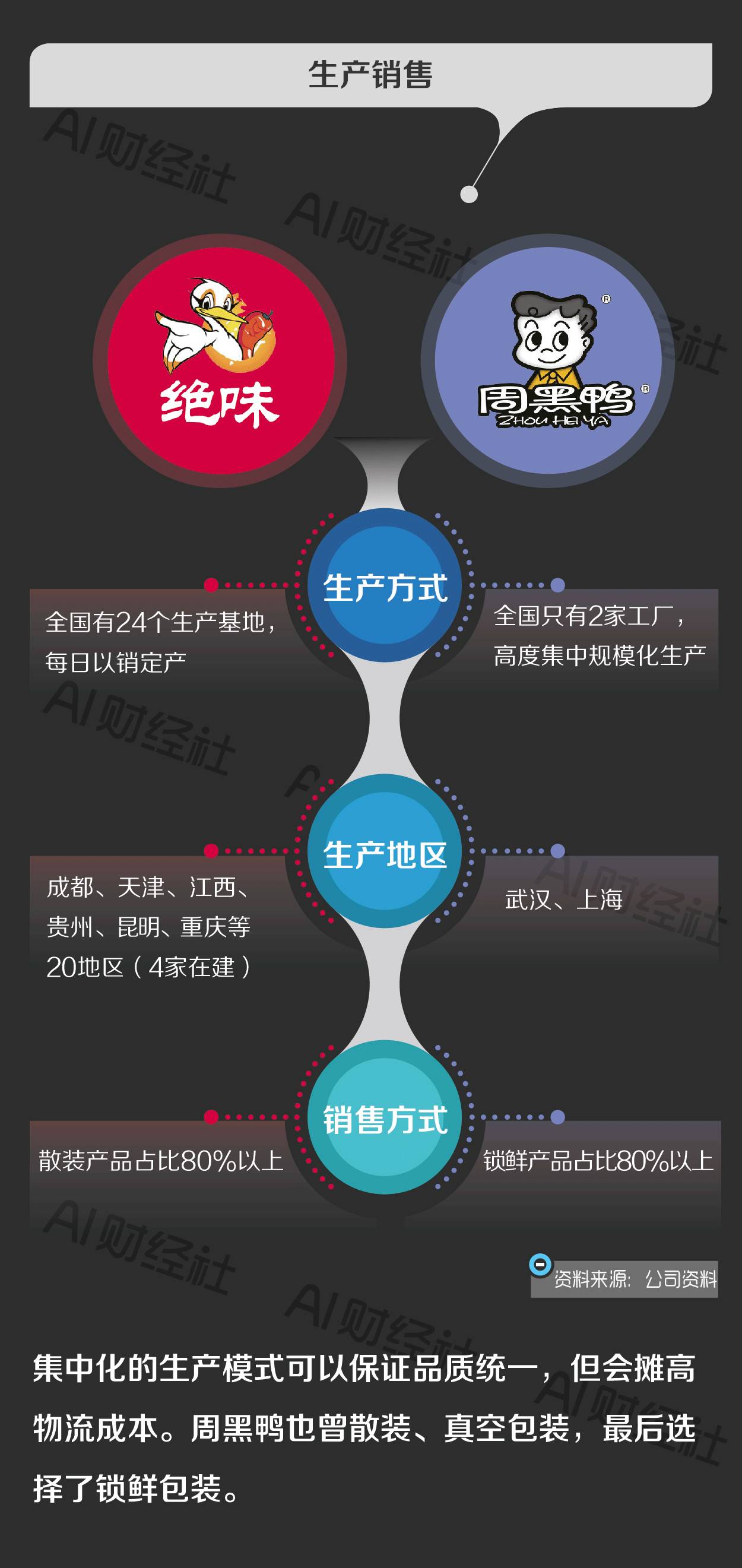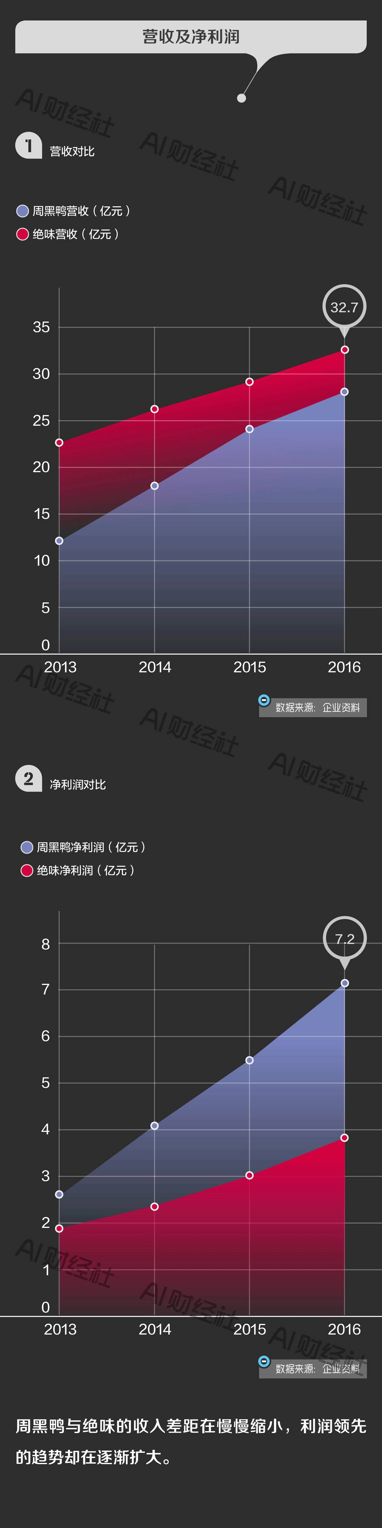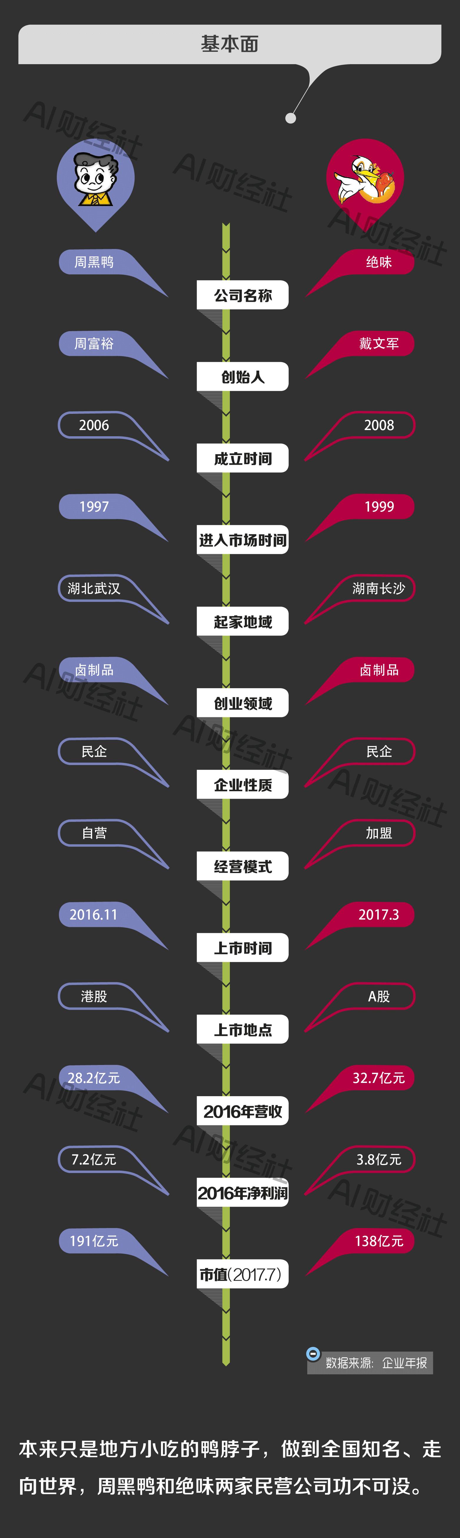 绝味和周黑鸭虽然成立时间不同,但主打产品都是鸭脖。