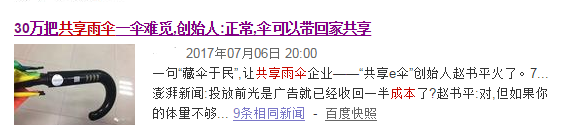 共享雨伞盈利模式不清,损耗大,不是高频行业……不过有共享单车先例,即便如此也有很多人认为是一个大风口,微博CEO来去之间则从另一个角度解读为什么资本疯狂抢共享雨伞。