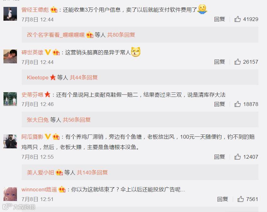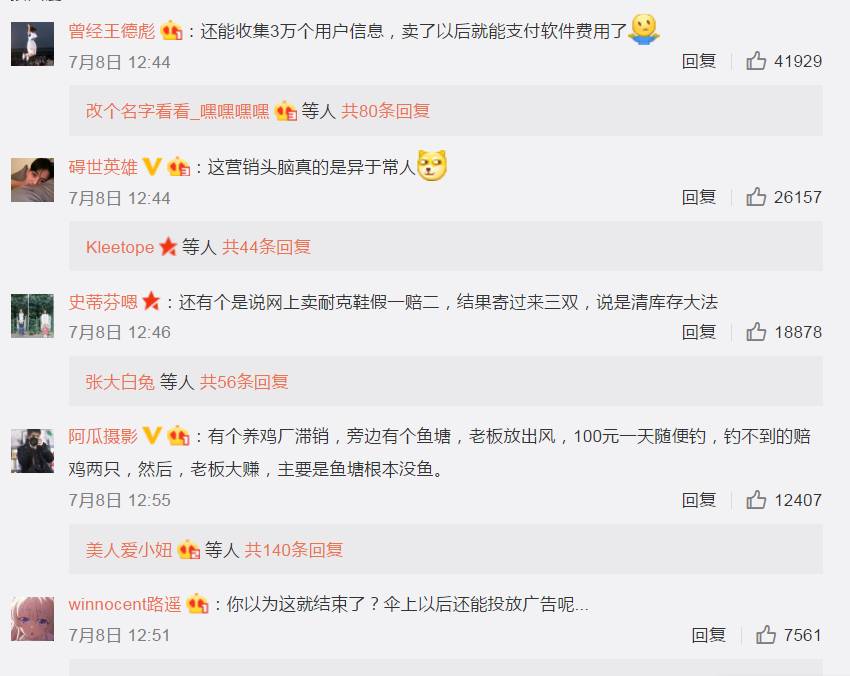 - 还有个是说网上卖耐克鞋假一赔二,结果寄过来三双,说是清库存大法。
