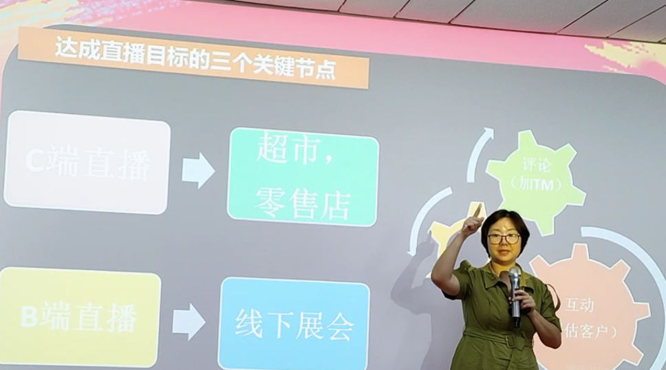 之后,吴老师详细讲解了直播落地的步骤及技巧,首先确定直播目标是激活老客户,还是开发新客户、推荐新产品,之后选个时间、地点(办公室、直播室、工厂),打造直播场景,按照打造的脚本按节奏进行直播。直播过程中分析询问客户情况,互动促进成交。在结束之后,及时复盘、总结得失等等。最后老师送上一系列外贸直播话术及流程工具包,助力大家更好落地,拿下直播的大流量。