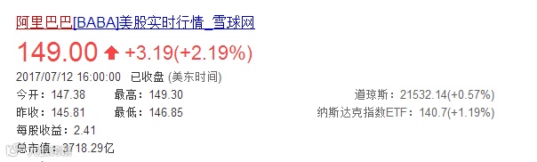 北京时间2017年7月13日,一直疯涨的阿里巴巴股价达到149美元。正式超越苹果的146.93美元,成为世界第一。意味着,阿里巴巴公司代替了苹果公司,也成为了世界上最具潜力,也最具投资价值的公司。