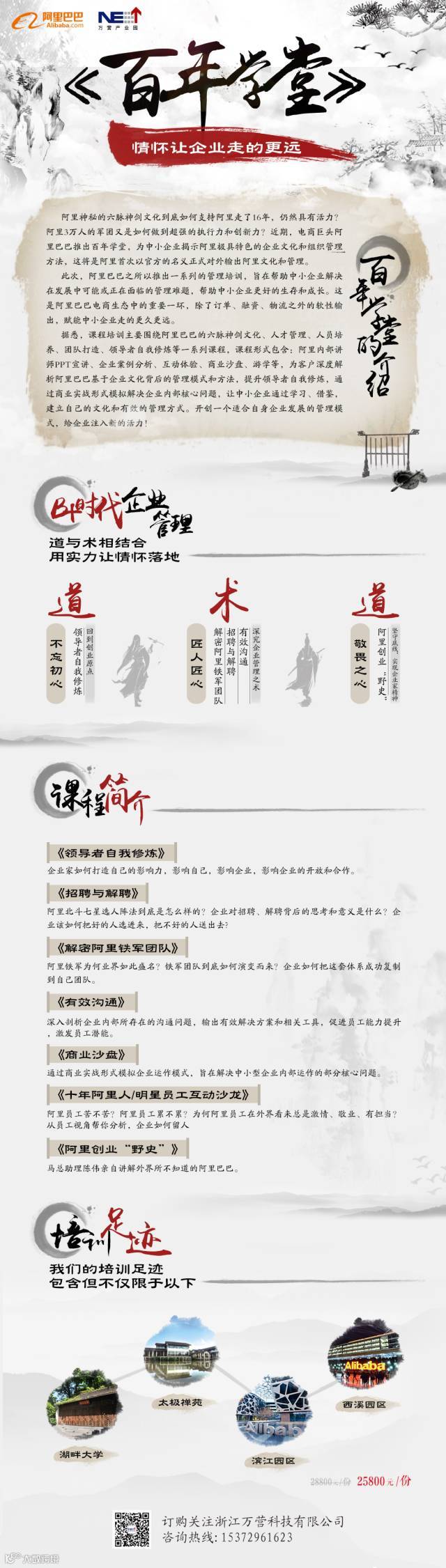 浙江万营科技有限公司阿里巴巴“百年学堂”2017年4月1日起,百年学堂的产品恢复原价。购买3月份的课可以享受最后优惠价。