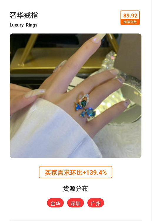 【优势产品分析】富有创意的层次、奢华的视觉、欢快的色彩、俏皮的材料和媚俗的图案推动了新珠宝系列2022春夏的设计方向;花卉和蝴蝶是关键标志,以 3D 或超写实形式更新,并带有彩绘细节。
