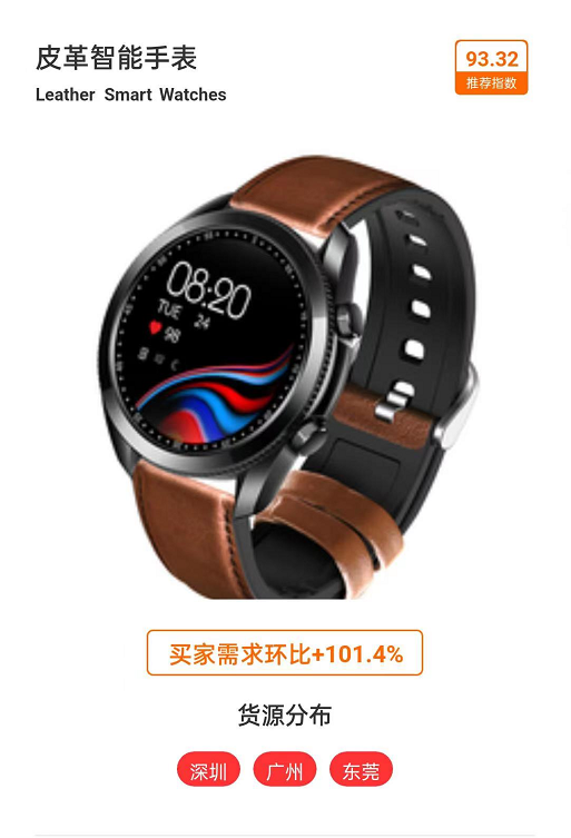 【优势产品分析】随着几大电子设备品牌智能手表的推出,相关配件搜索热度高,款式需求集中在皮质表带,和具有时尚属性的女士表带中。