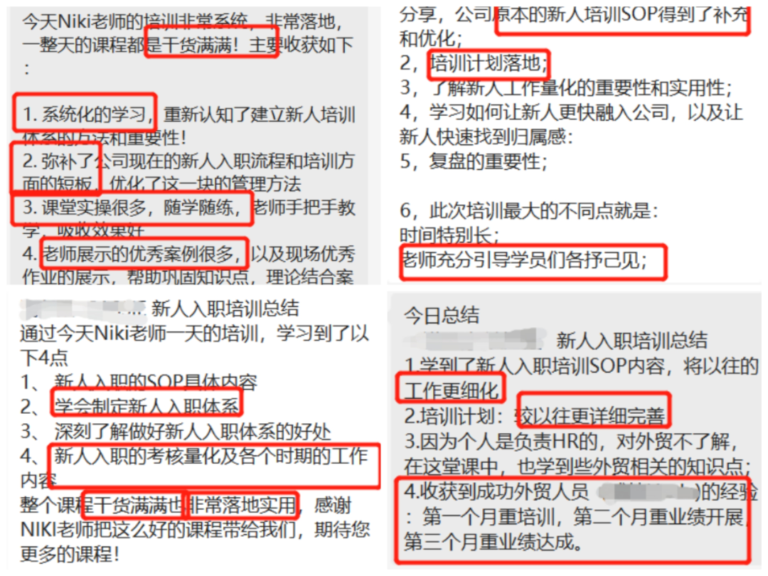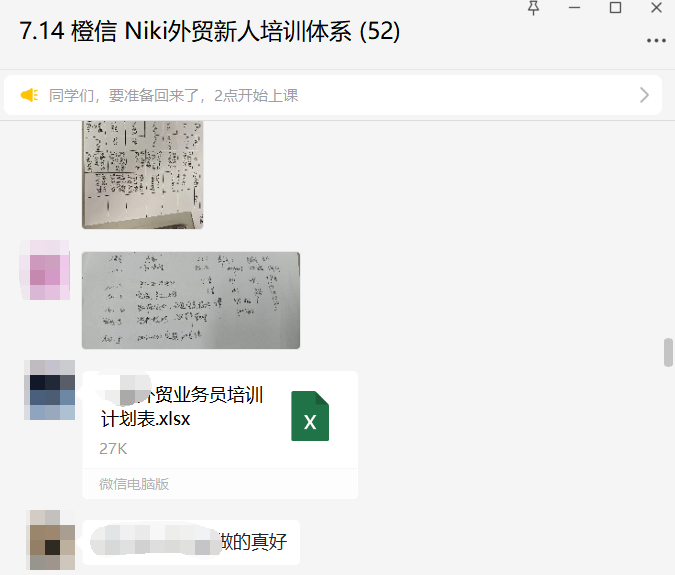 高效学习总会忽略时间的流逝,今天的课程眨眼间就要结束。抓住最后时间,学员们对自己今天的学习进行总结,并发布在群,大家分享笔记共同进步。为优秀的惠州外贸商家喝彩!