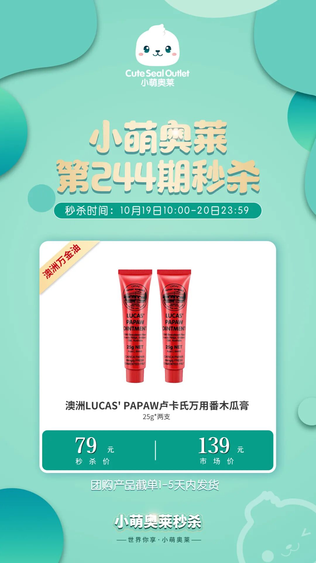 小萌奥莱Cute Seal Outlet10.19团品汇总