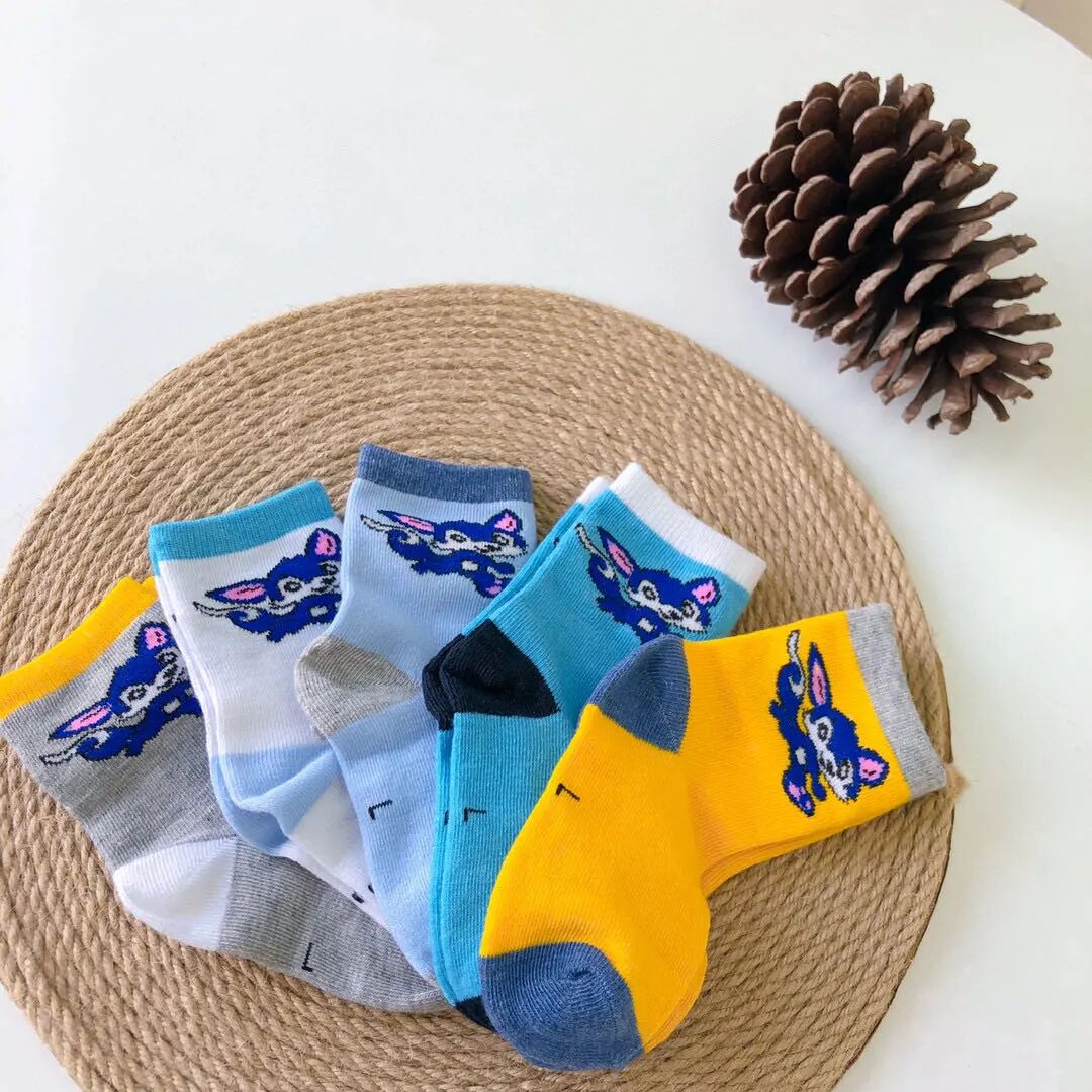汤姆精灵儿童纯棉中筒祙(5双/5色/盒)