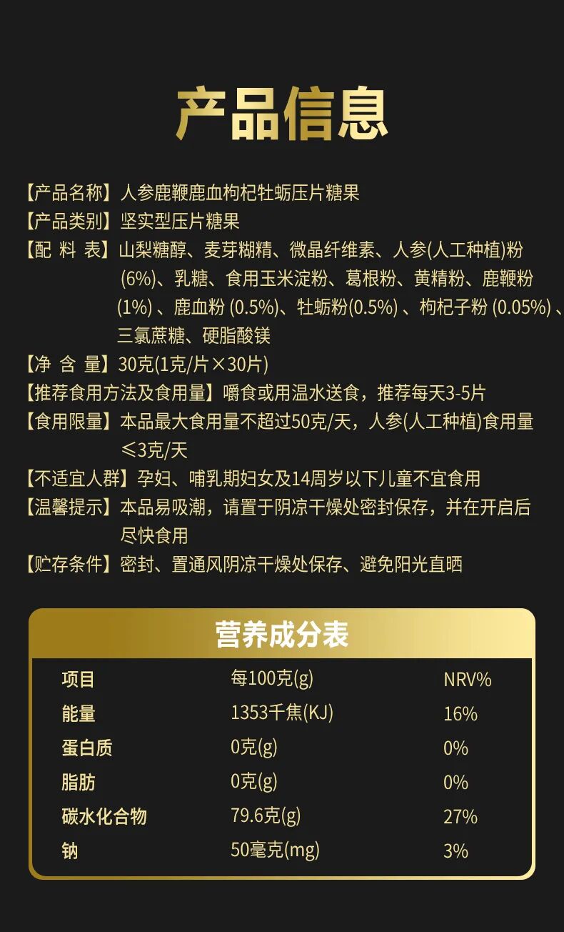 1粒人参鹿鞭鹿血枸杞牡蛎压片糖果