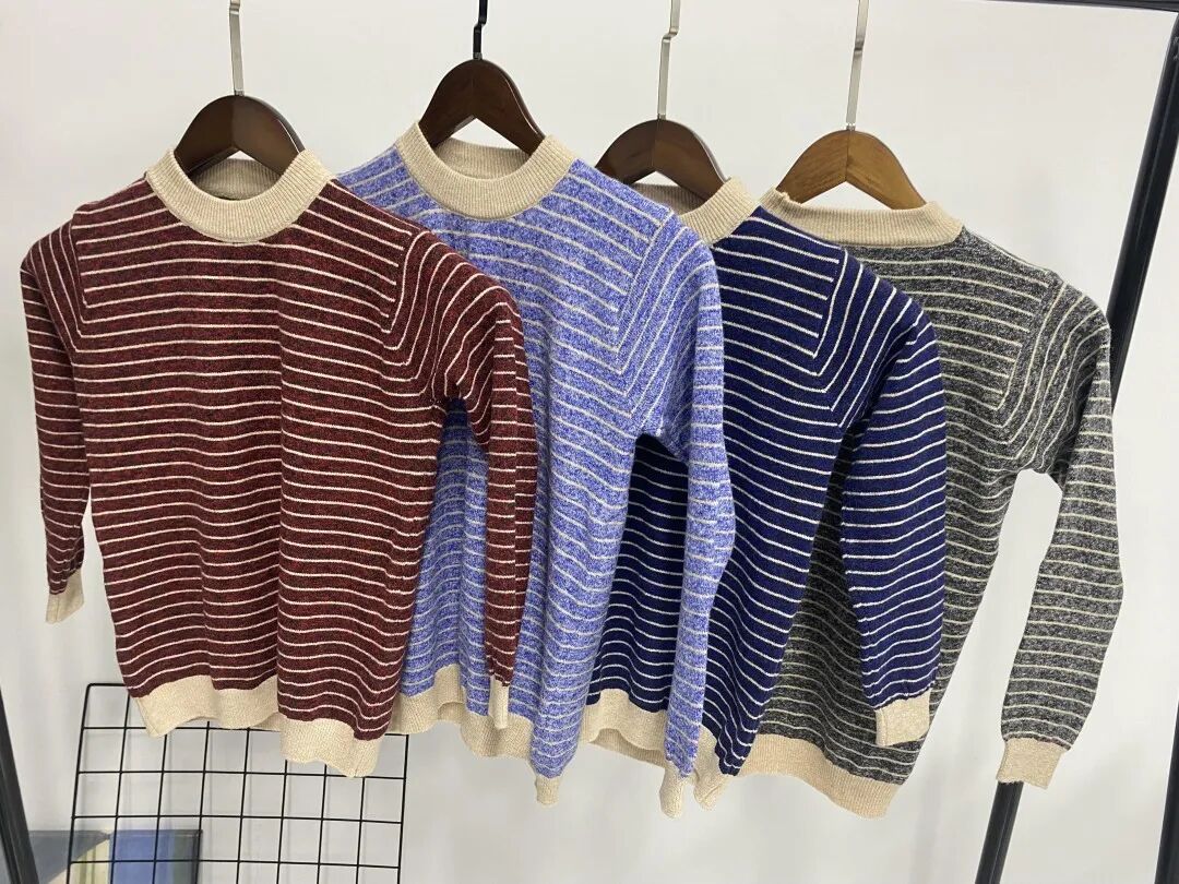 儿童撞色圆领条纹毛衣