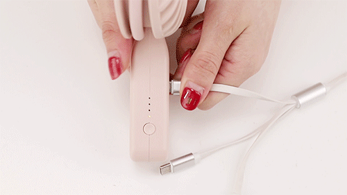 平时出门逛街如果风扇没电了,把充电宝放包里,而风扇挂起来,直接就可以边充边用了,也不需要拿着,真的懒人必备!