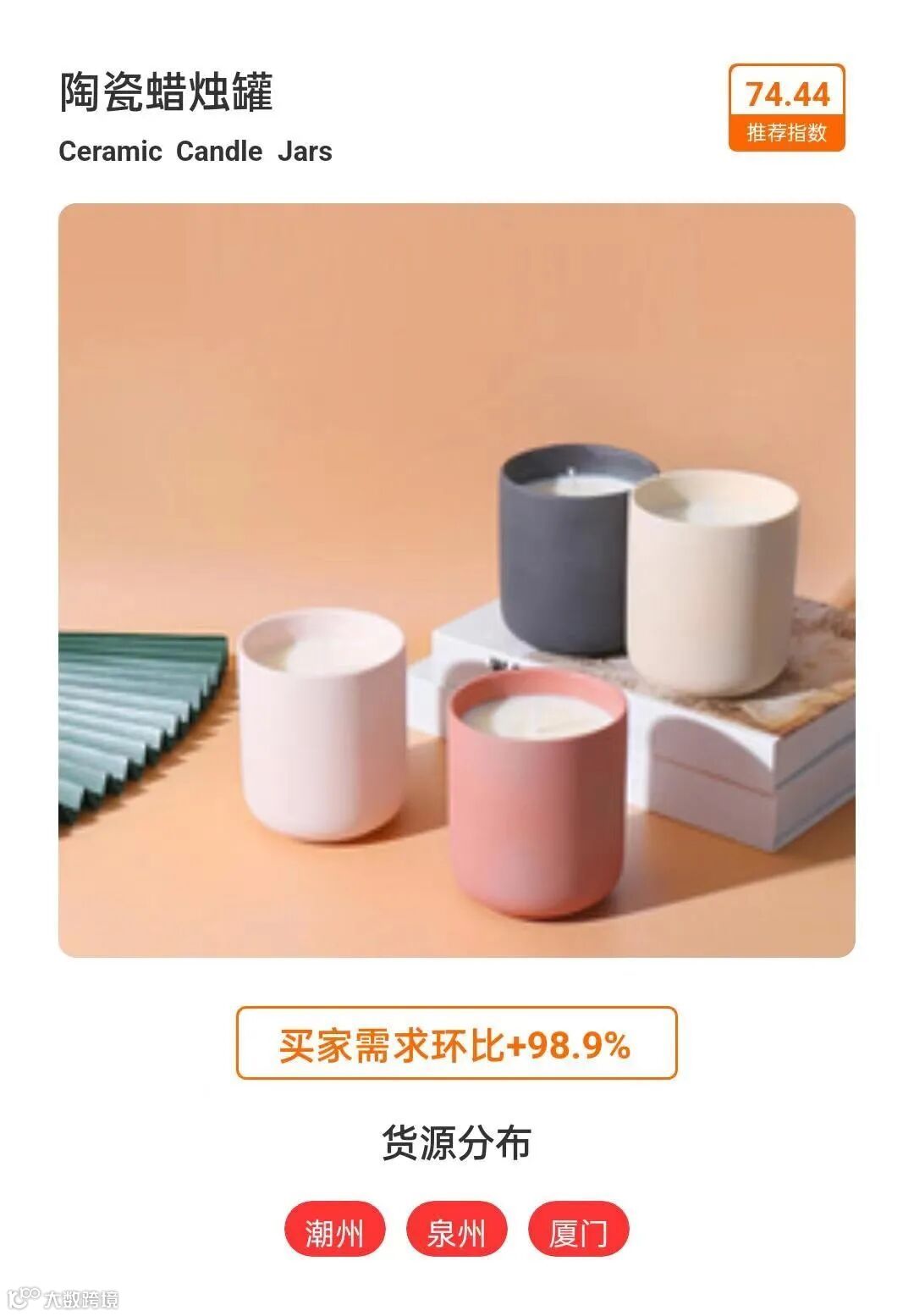 【优势产品分析】蜡烛是欧美市场的刚需性家饰产品,普通香薰蜡烛带动烛台风灯、蜡烛罐等流量趋稳,candle jar等类似关键词在国际站属于高频热搜,且持续火热。