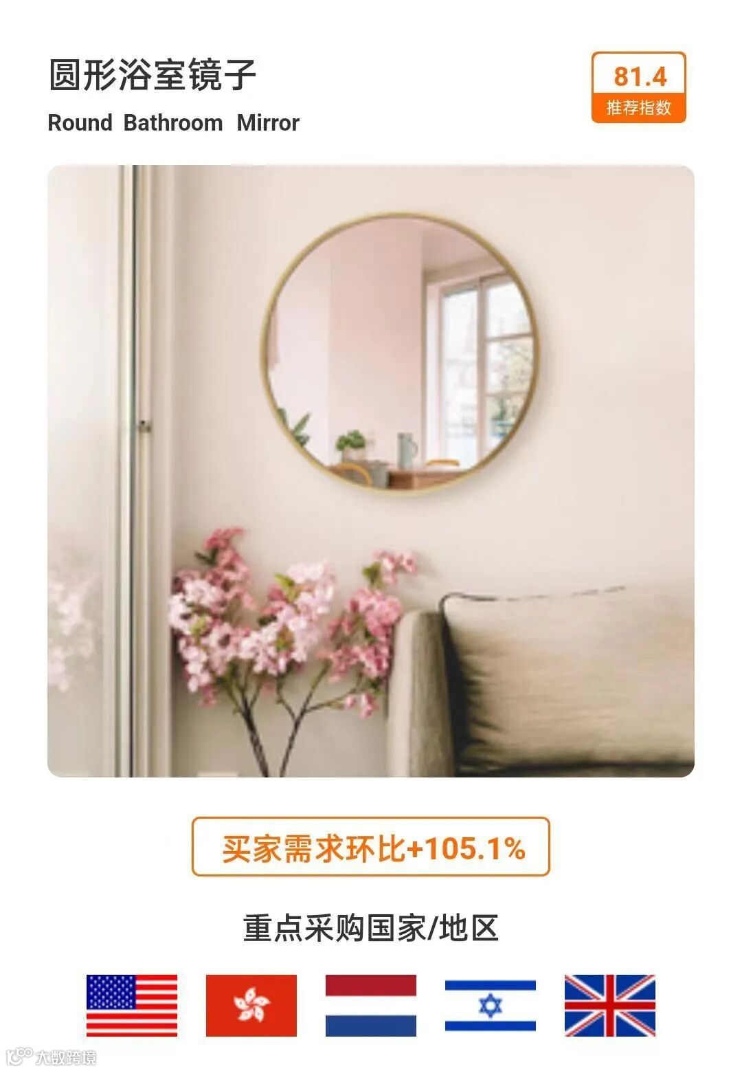 【优势产品分析】挂壁镜子在6月上半月冲上热搜指数排行榜,简约而富有人文意义的「极简风」在2022年会继续流行,但严格的极简主义有削弱的趋势,建议将空间中将极简主义与其他装饰风格或是色彩相融合,更好地反映个人化空间。
