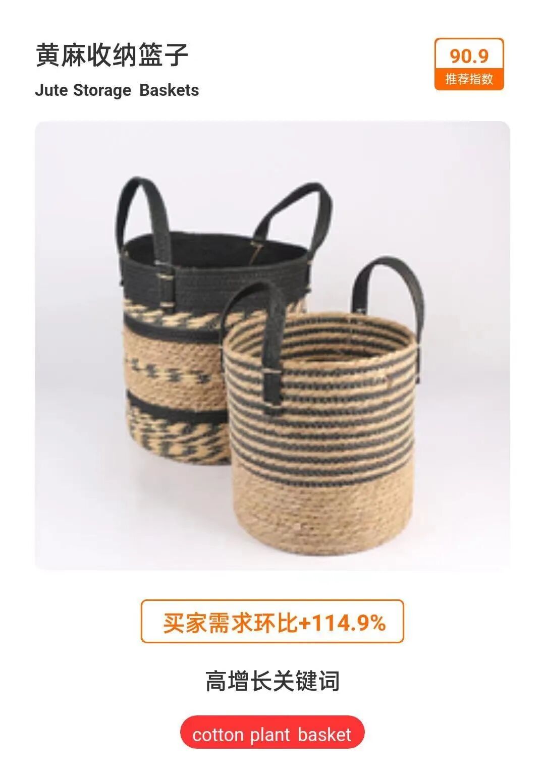 【优势产品分析】现在人们更偏好去选择「多功能、实用、且兼具美感」的家饰品、收纳品,充分利用家里每个角落。麻类的收纳品围绕著「自然」这个主题,偏中性的颜色,如米色、象牙色、灰褐色、灰色、大地棕、土褐色等更能打造舒适宜人的环境。
