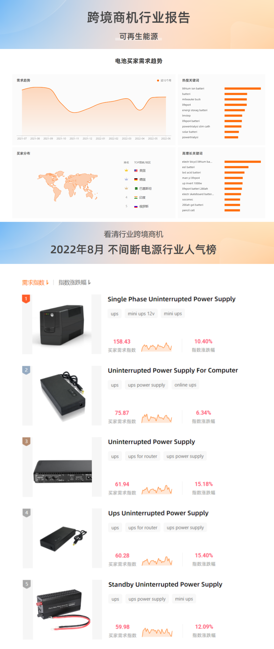 【外贸趋势品推荐】8月可再生能源行业人气榜