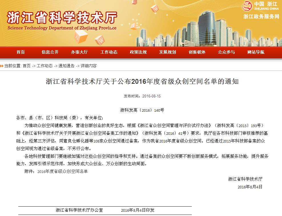 近日,从浙江省科技厅传来好消息,万营科技旗下的万营创客空间喜获浙江省“2016年度省级众创空间”荣誉称号。