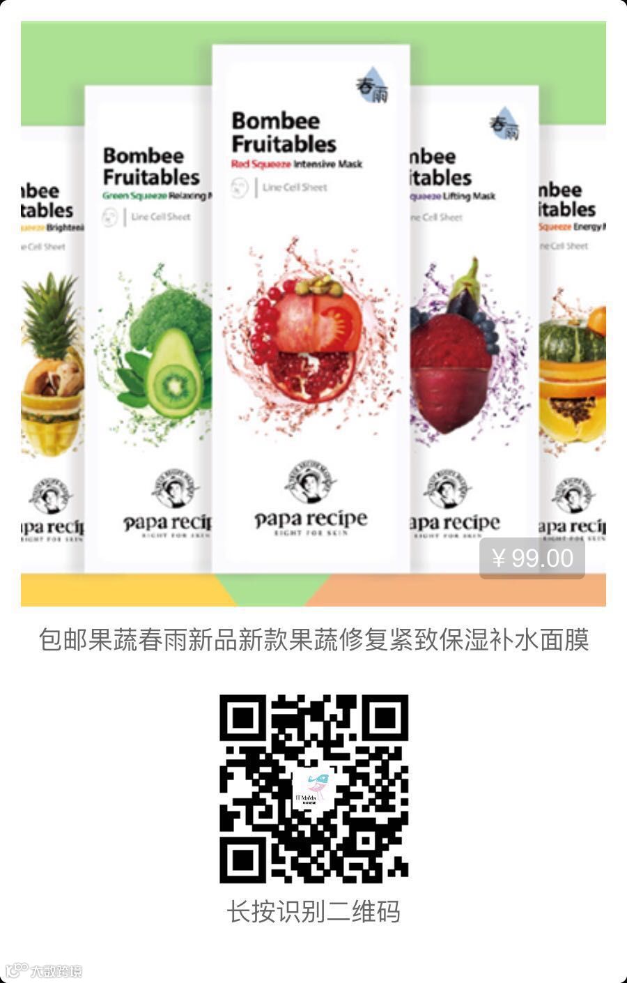 原价99的春雨果蔬面膜