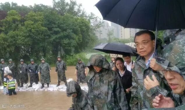 7月6日一早,李克强总理从湖南岳阳乘高铁急赴湖北武汉,一路上大雨如注。总理一下车,直奔青山区长江干堤倒口湖堤段管涌现场指挥抢险救灾。