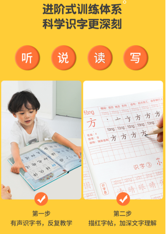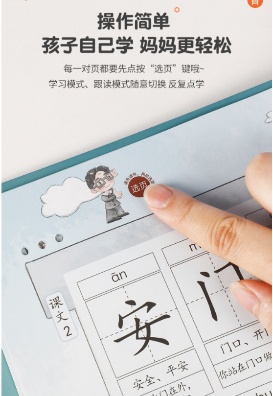 产品配件:名师识字点读本*1,配套描红本*1,usb充电线*1