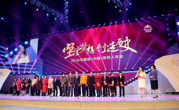 行政嘉宾和首席业务总监带领我们共同畅想无限极更美好的未来:受人追捧的产品、引以为傲的品牌、首选的事业机会、健康的生活方式、收获精彩的人生、迈向卓越的企业,在未来,无限极必将引领行业发展,代表中华民族创造历史!