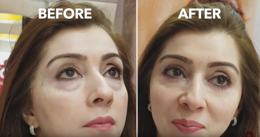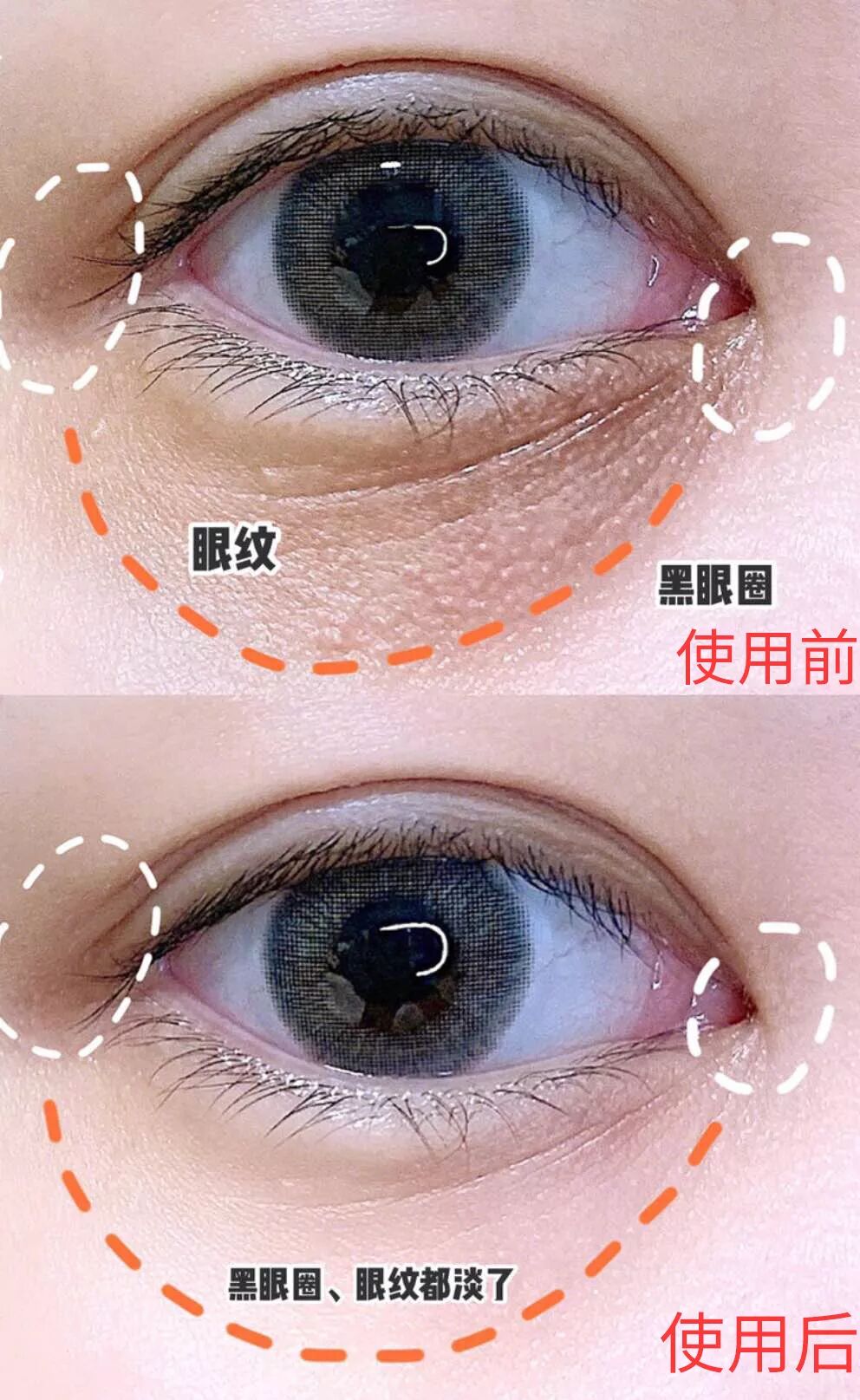 这哪是现场涂了个眼霜,这是现场抽了脂吧!恨不得耷拉到苹果肌上的眼袋真的就在5分钟彻底消失!黑眼圈也不见了!