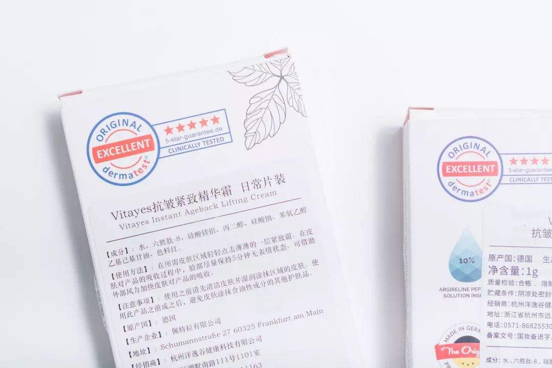 其实市面上打着六胜肽抗衰的名号圈钱的产品不少,但不是含量微乎其微,就是各种掺水,而VITAYES去皱霜的六胜肽含量竟然高达10%,几乎算得上最高含量了,所以才能在5分钟内效果立竿见影!